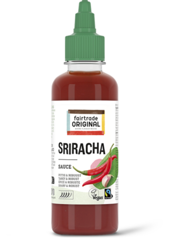 Chili/garlic/lemongrass: Fairtrade certified, traded, audited and sourced from Fairtrade producers. Fairtrade sugar: mass balance is used to match Fairtrade sourcing. Total: 56%, excluding water. www.info.fairtrade.net/sourcing